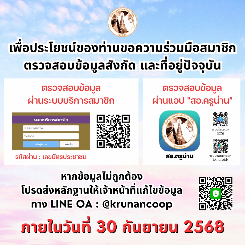 แจ้งปิดระบบ ATM และ แอป สอ.ครูน่าน เดือนตุลาคม 2568