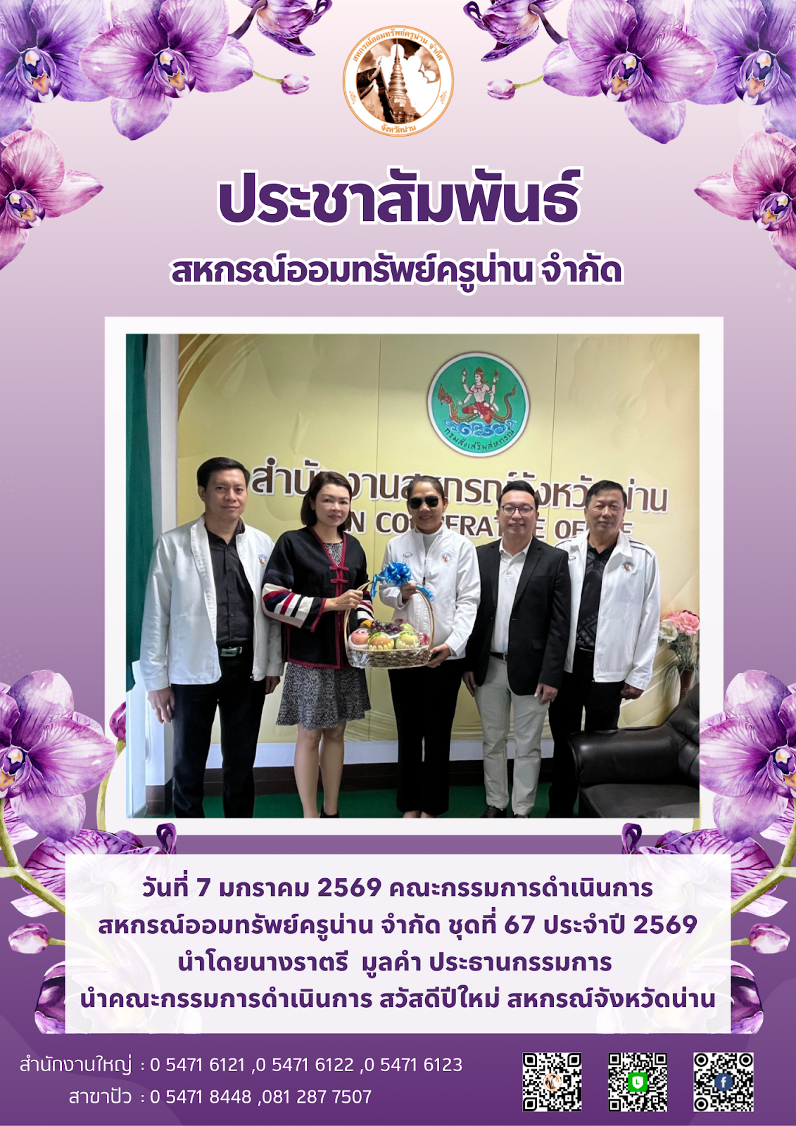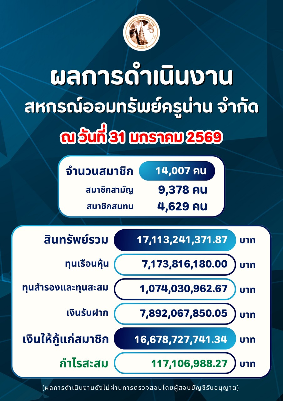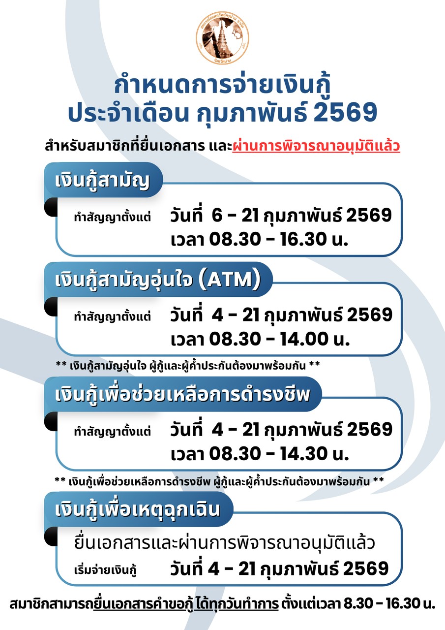 แจ้งปิดระบบ ATM และ แอป สอ.ครูน่าน เดือนกุมภาพันธ์ 2569