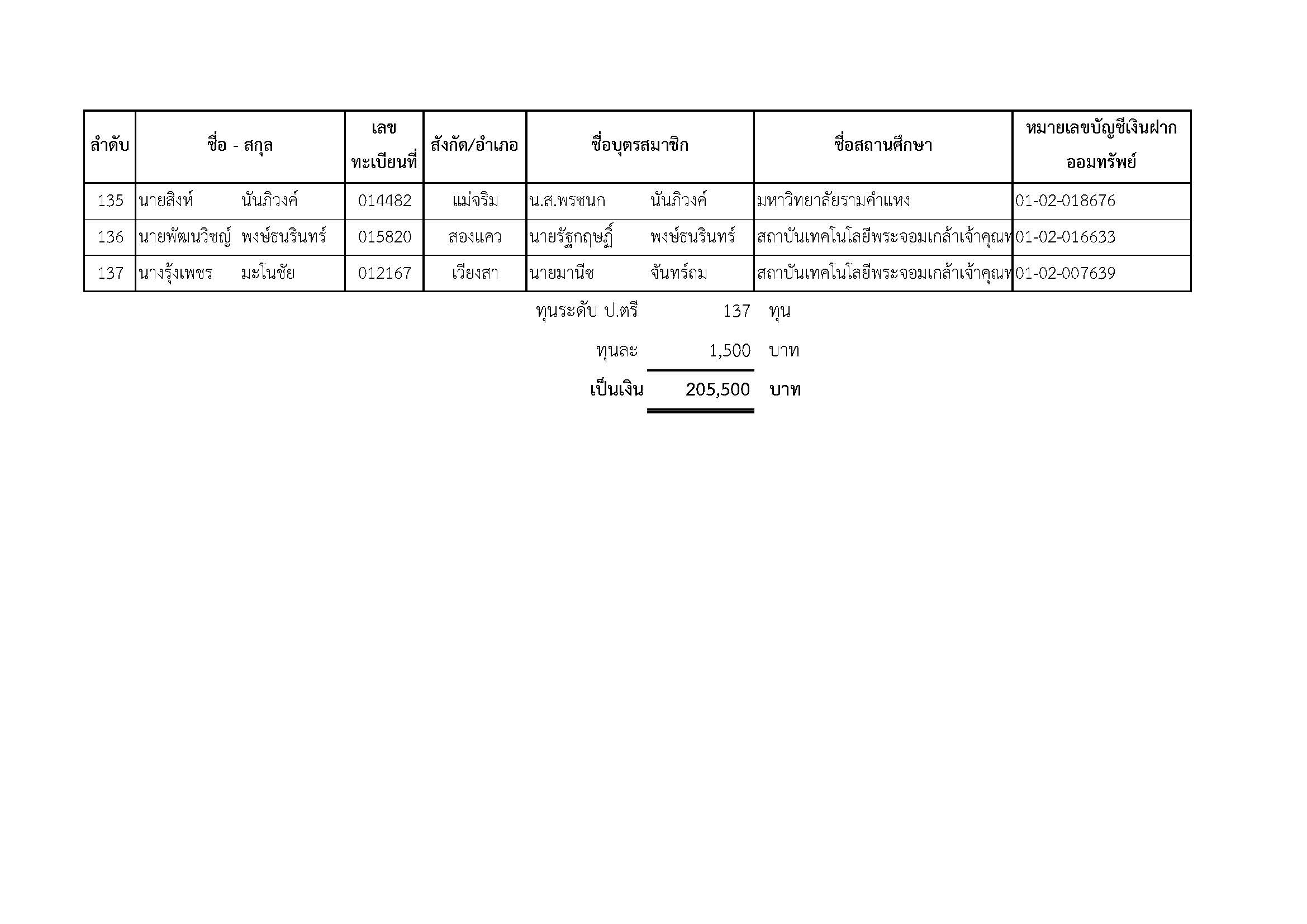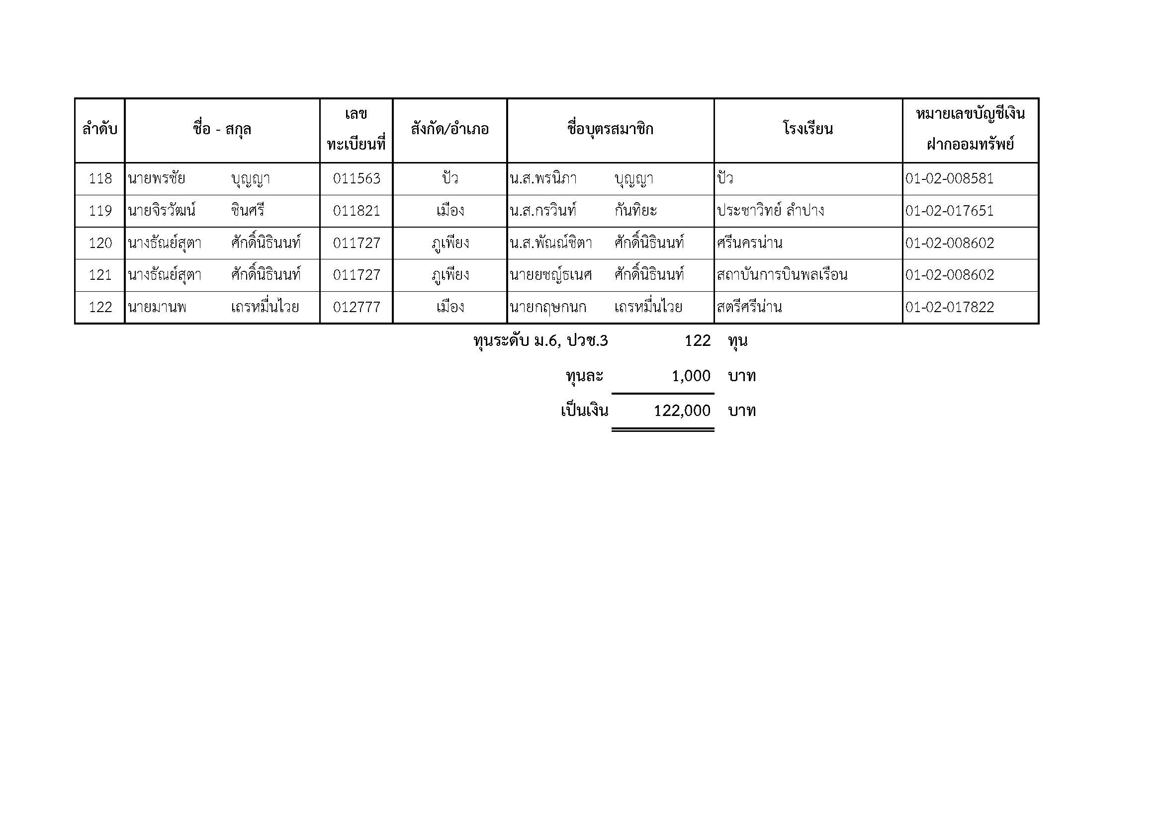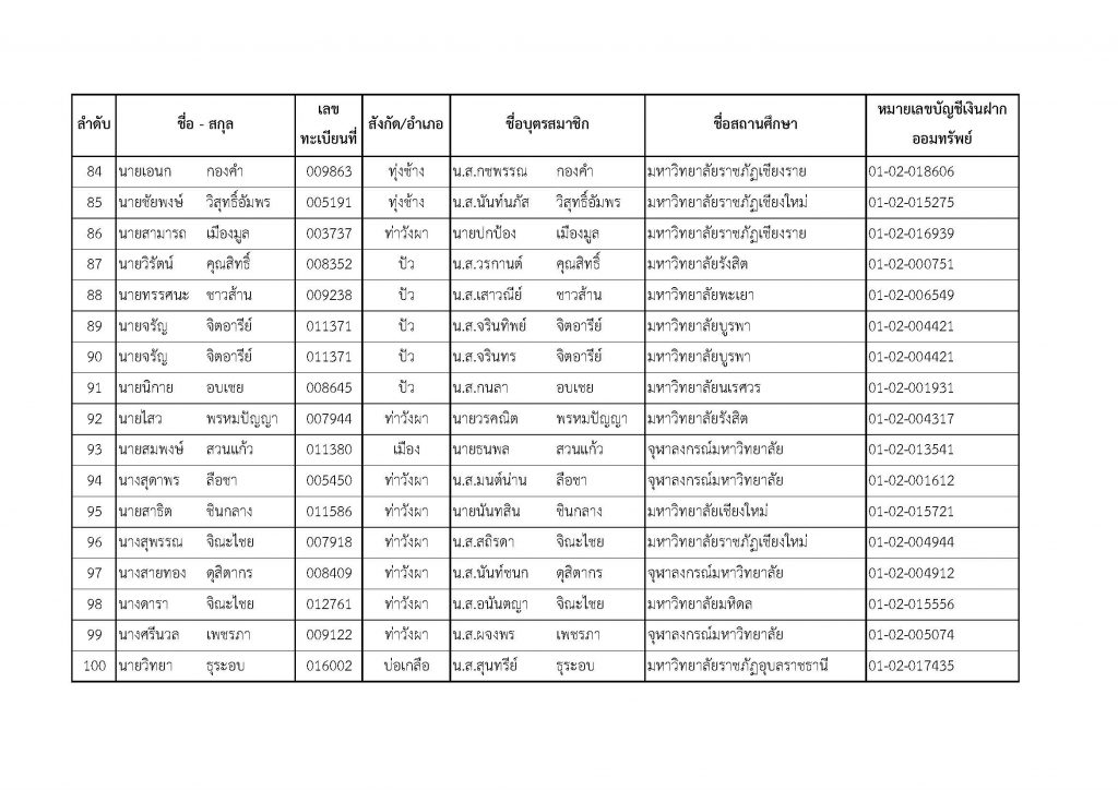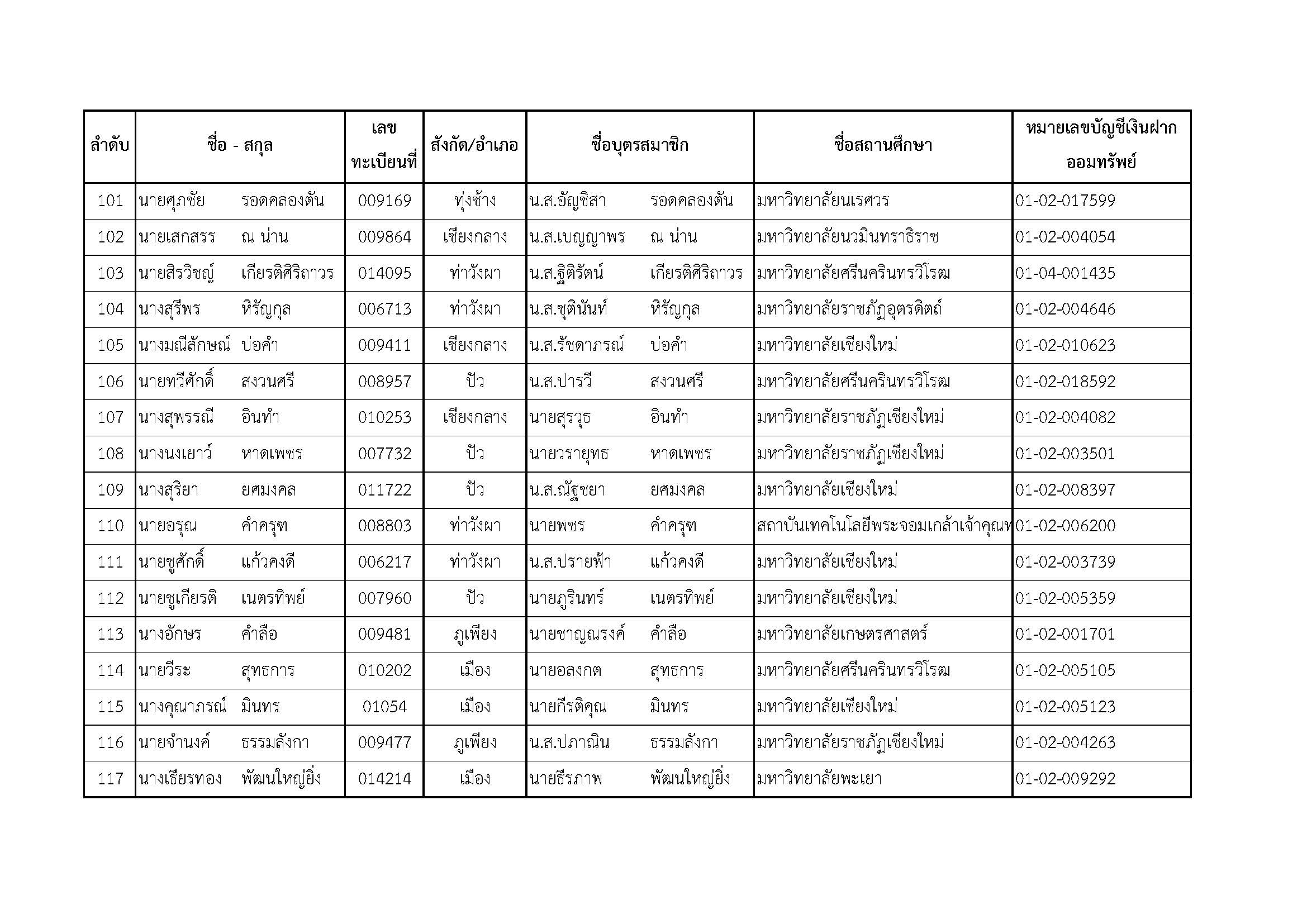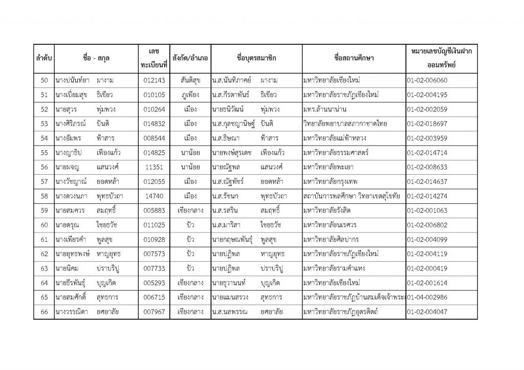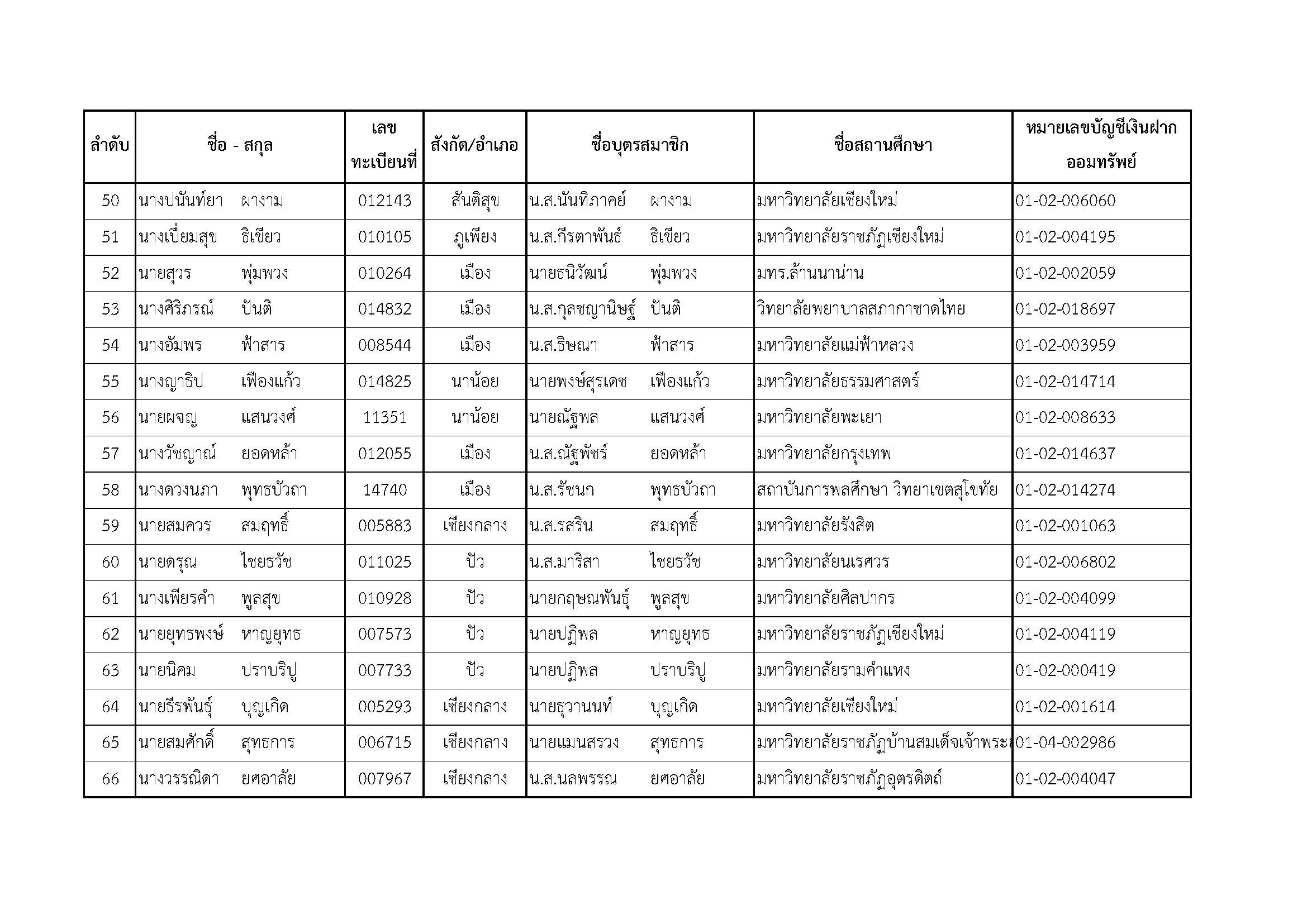 ที่ประชุมคณะกรรมการดำเนินกาสหกรณ์ออมทรัพย์ครูน่าน จำกัด ได้มีมติอนุมัติจ่ายทุนสวัสดิการส่งเสริมการศึกษาบุตรสมาชิกประจำปี 2557 โดยได้โอนเงินเข้าบัญชีเงินฝากของสมาชิก สมาชิกสามารถตรวจสอบข้อมูลได้ตามรายชื่อด้านล่าง ตั้งแต่วันนี้เป็นต้นไป