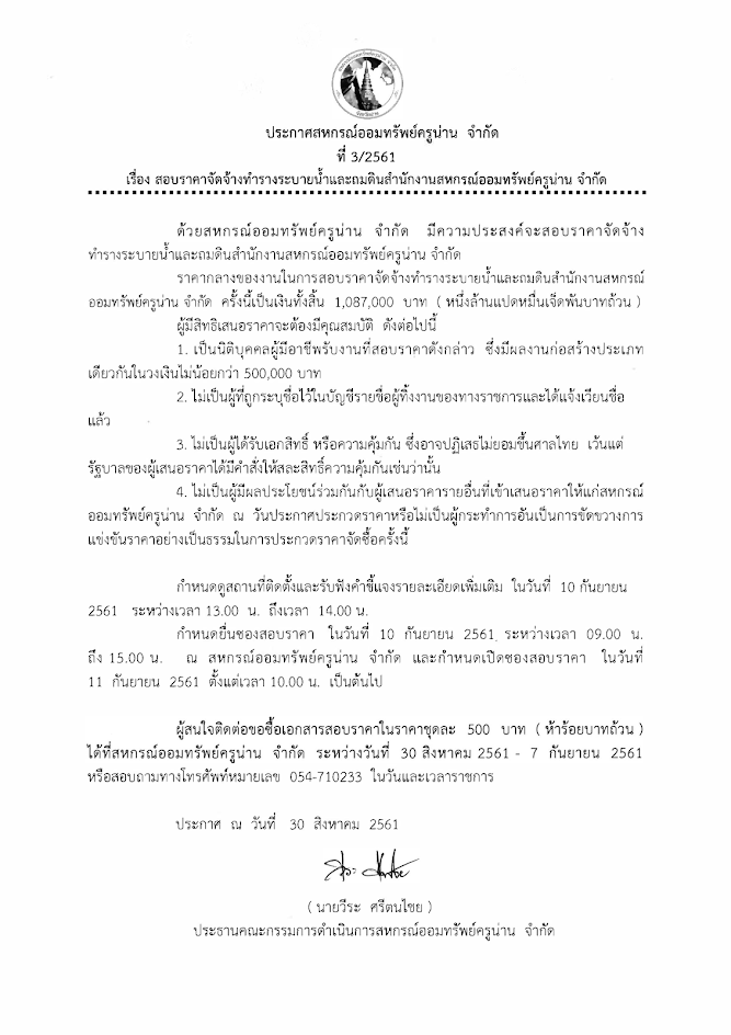 ข่าวประชาสัมพันธ์ ประกาศสหกรณ์ออมทรัพย์ครูน่าน จำกัด เรื่อง การสรรหาผู้สอบบัญชี ประจำปี 256924 ต.ค. 256824 ต.ค. 2025